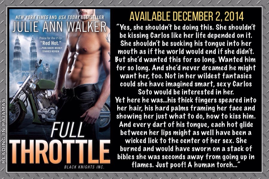 Thank you Reading in Pajamas for hosting Julie Ann Walker and I today!! And what an excellent topic too!! I love music. It can lift and capture a mood so completely, I’m always on the lookout for songs for my stories. I’m not sure about you, but when I watch movies and shows, a well place song (be it orchestral or lyrical) I’m taken deeper into a scene. (I’ve also been ripped out of a scene when the musical director picks a song that really misses the mark, but we won’t concentrate on that. <wink>)